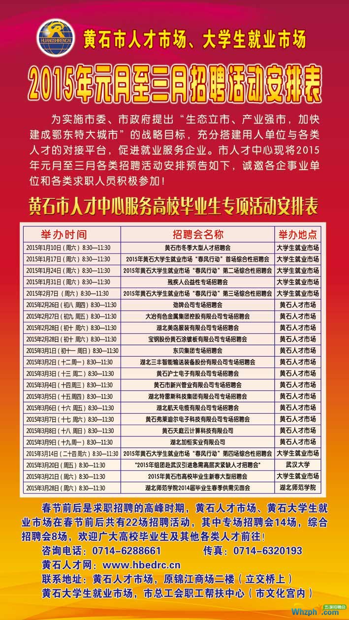 黄石人才市场近期部分招聘会