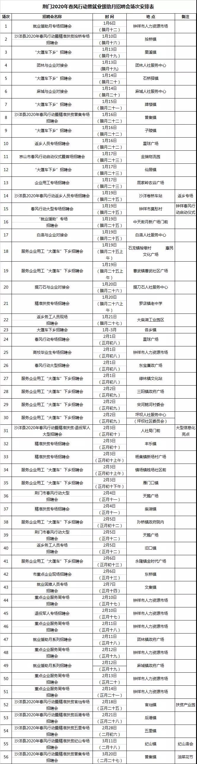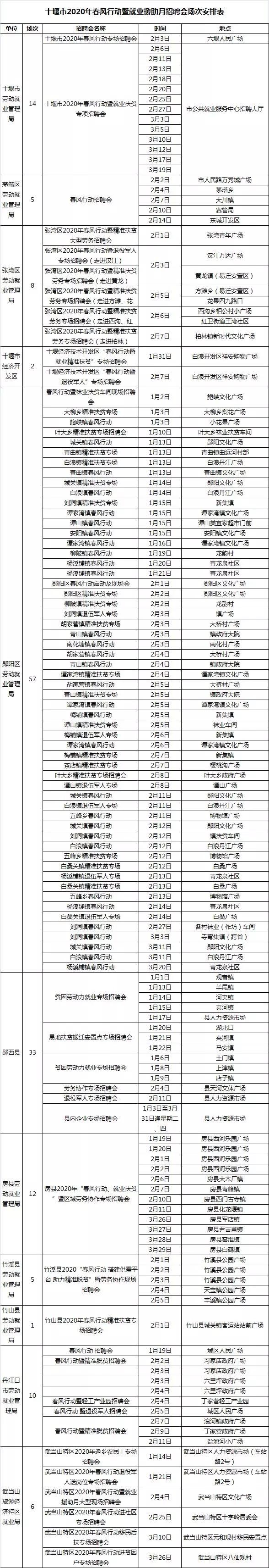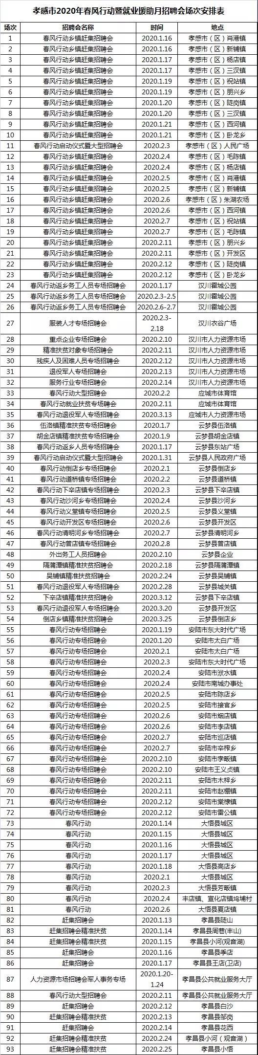 湖北春风行动近期部分招聘会
