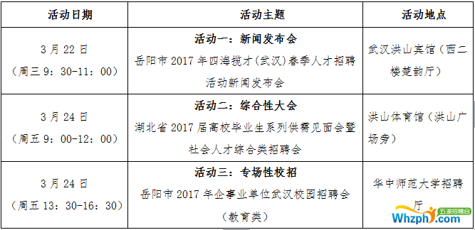岳阳市2017年四海揽才(武汉)春季人才招聘活动”。