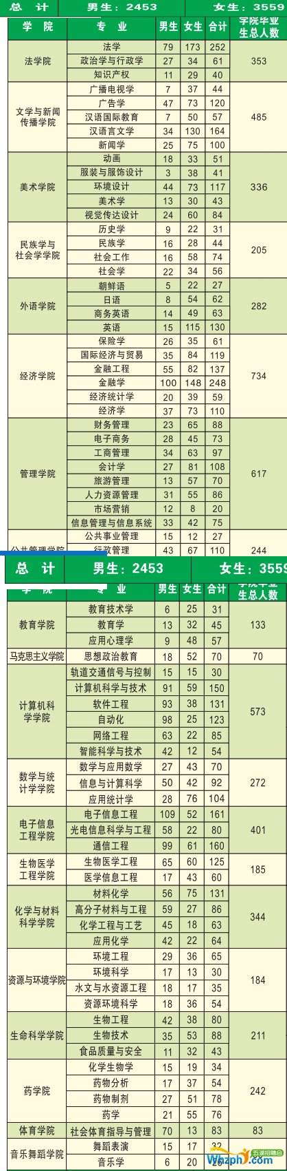 毕业生源信息如下