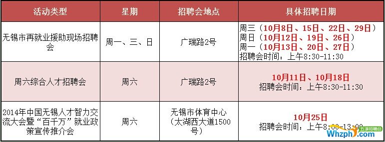 无锡市人力资源市场近期招聘会安排(10月)